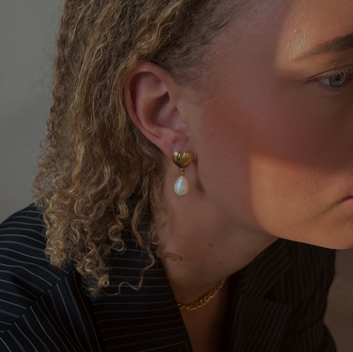 18k guldpläterade grova kärleksörhängen med sötvattenspärlor.