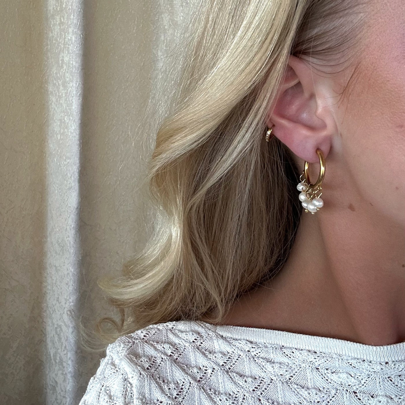 18k guldpläterade kreoler med små sötvattenspärlor.