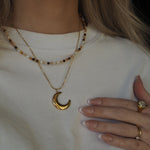 18k guldpläterat universumhalsband med hamrat månehänge.