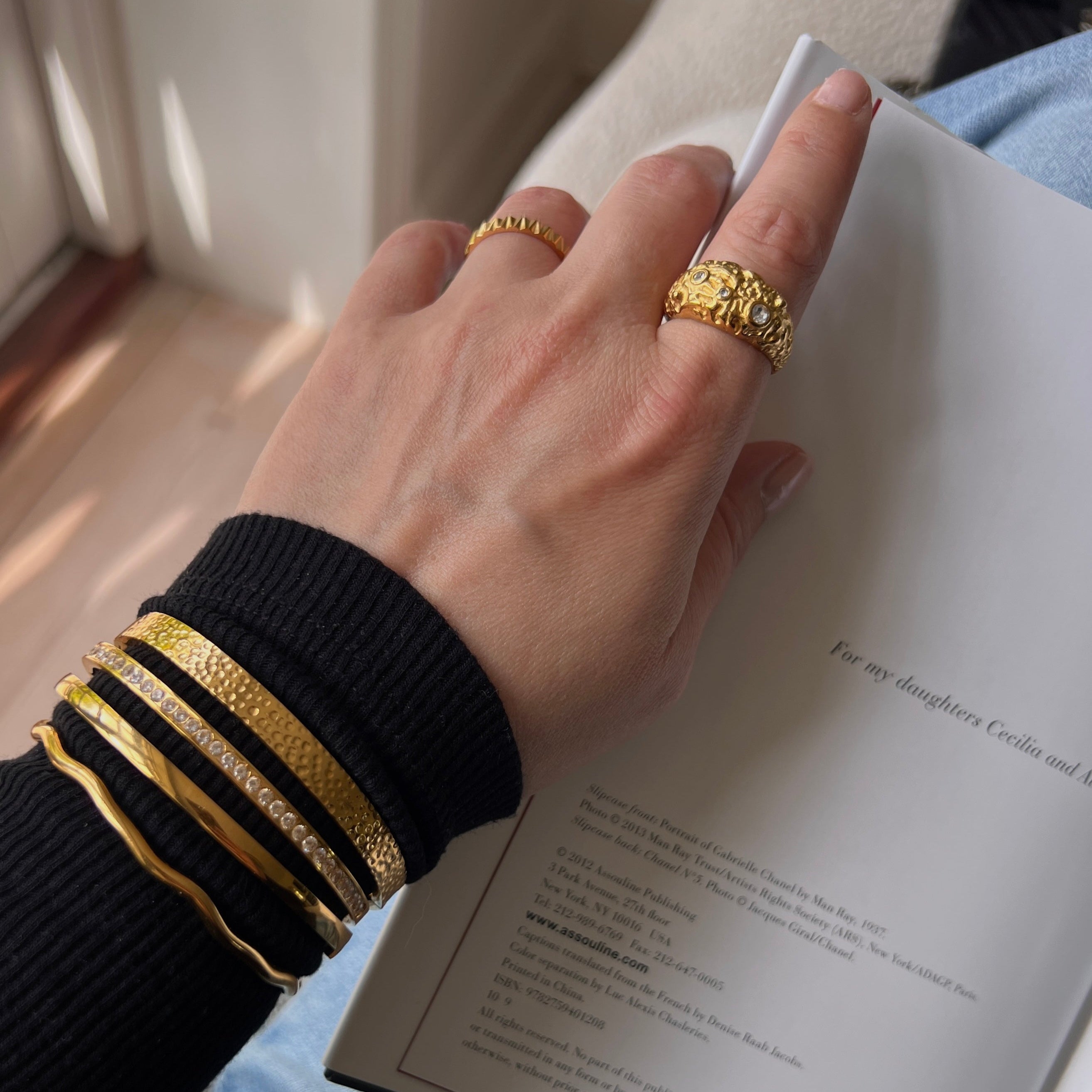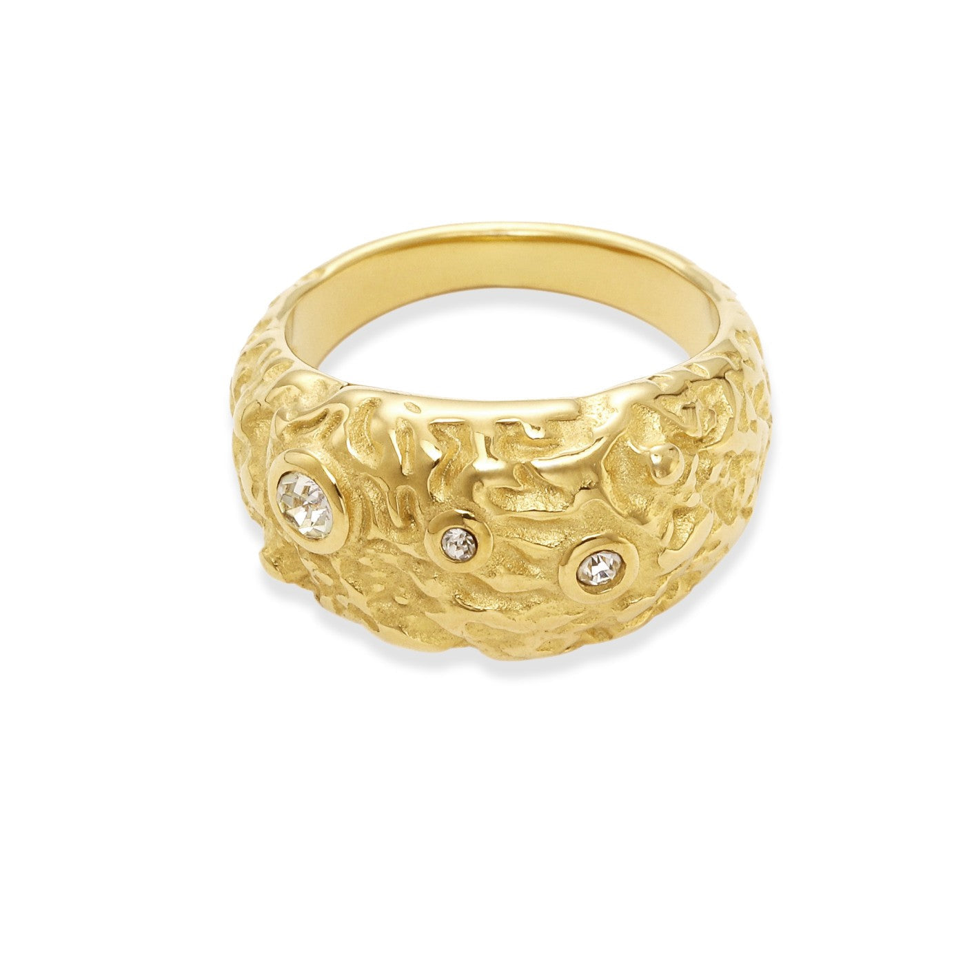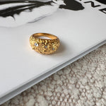 18k guldpläterad rustik grov ring med zirkonia.
