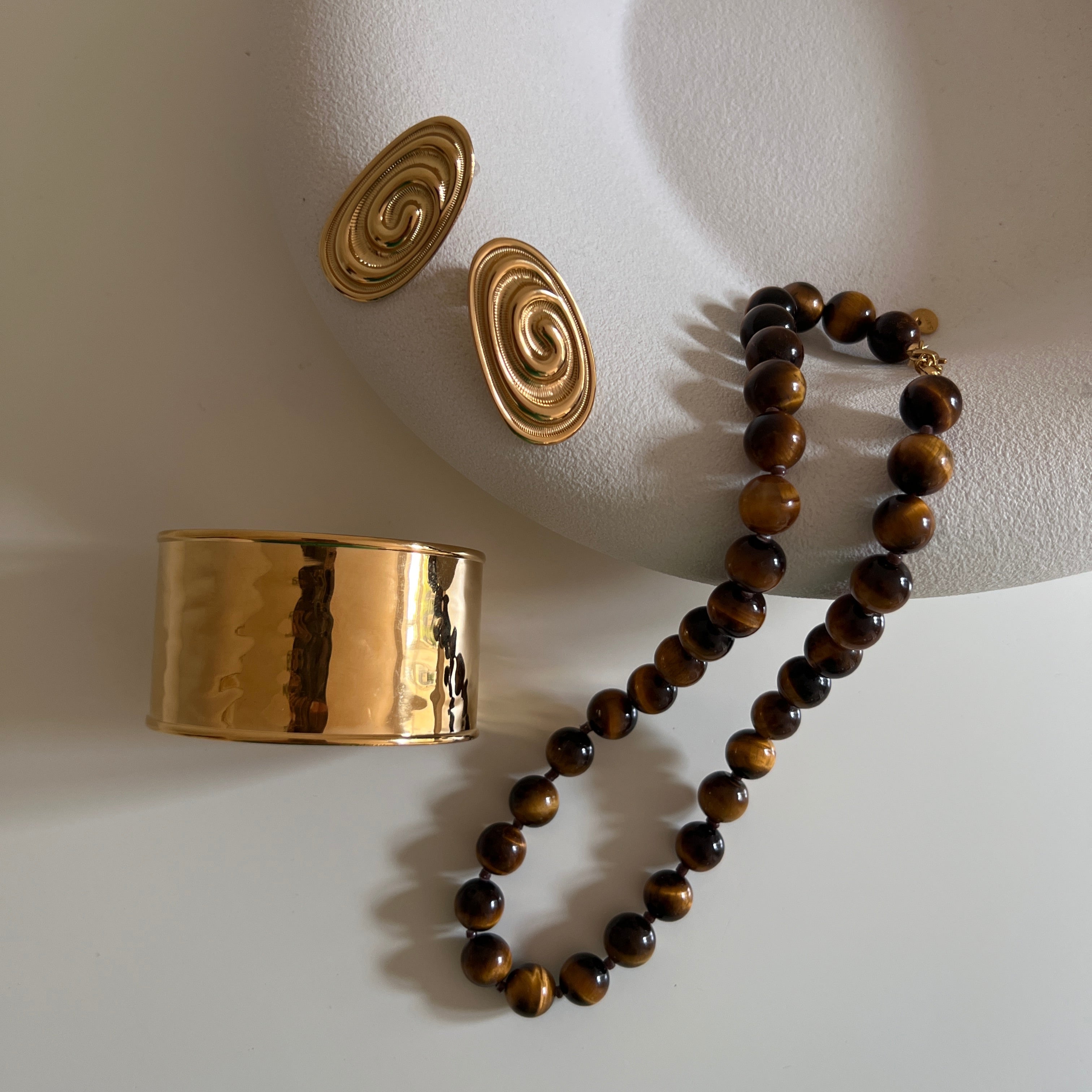 18k guldpläterat armband med tigeröga.